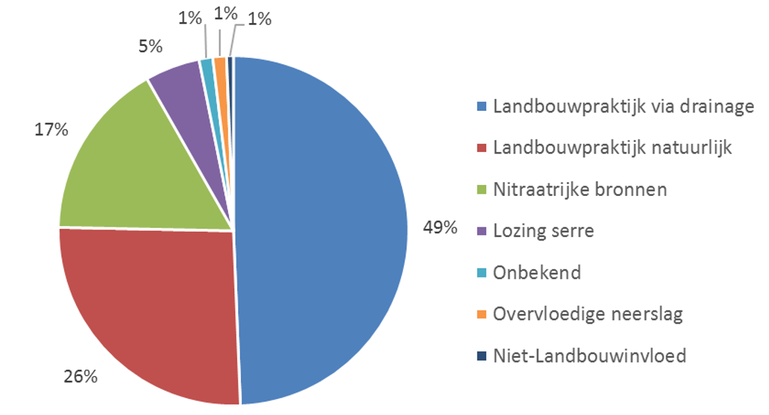 Figuur 1 De verschillende oorzaken van nitraatoverschrijdingen op Vlaams niveau (2016-2017)