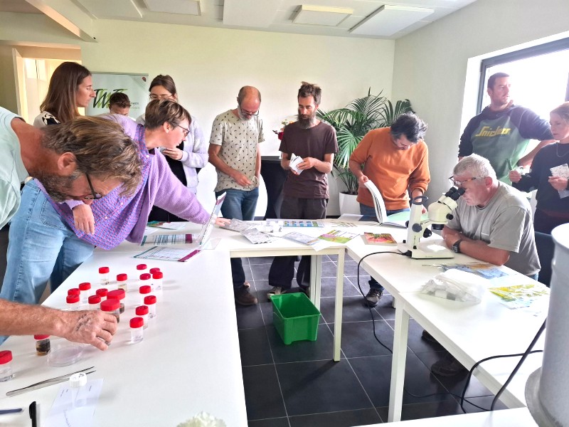 Een belangrijk uitgangspunt van de workshop was dat natuurlijke vijanden, zoals roofinsecten, een cruciale rol kunnen spelen bij de beheersing van plagen zoals bijvoorbeeld bladluizen in bloemen- en groenteteelten. Het herkennen en ondersteunen van deze nuttige insecten stond centraal. Deelnemers kregen meer uitleg over verschillende insectenvallen, leerden nuttigen onderscheiden van plaagsoorten en kregen inzicht in hoe functionele agrobiodiversiteit kan bijdragen aan een evenwichtig teeltsysteem.