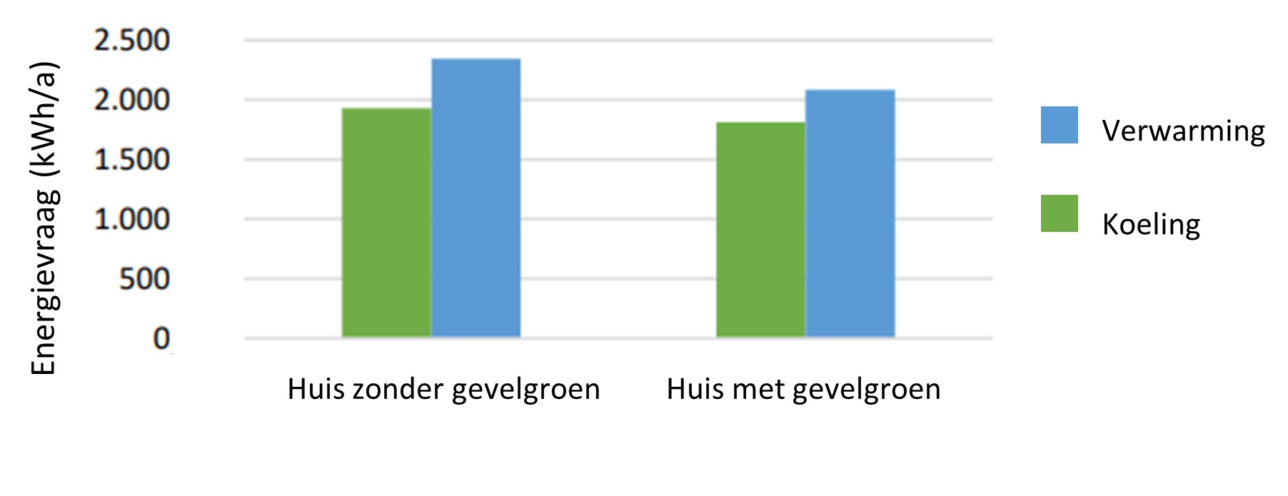 Figuur 4: Energiebehoefte van een gebouw met gevelgroen in vergelijking met een gebouw zonder gevelgroen.