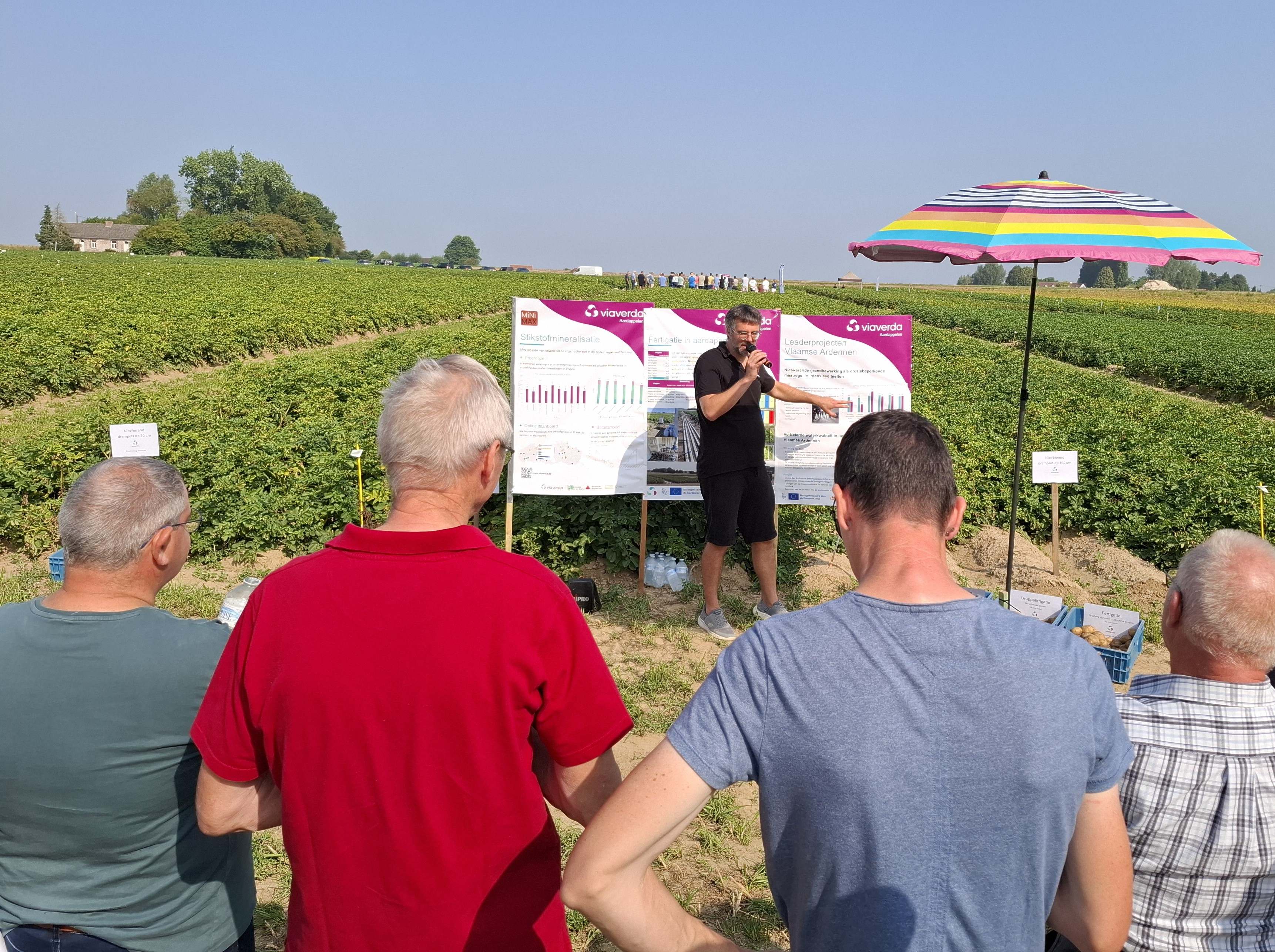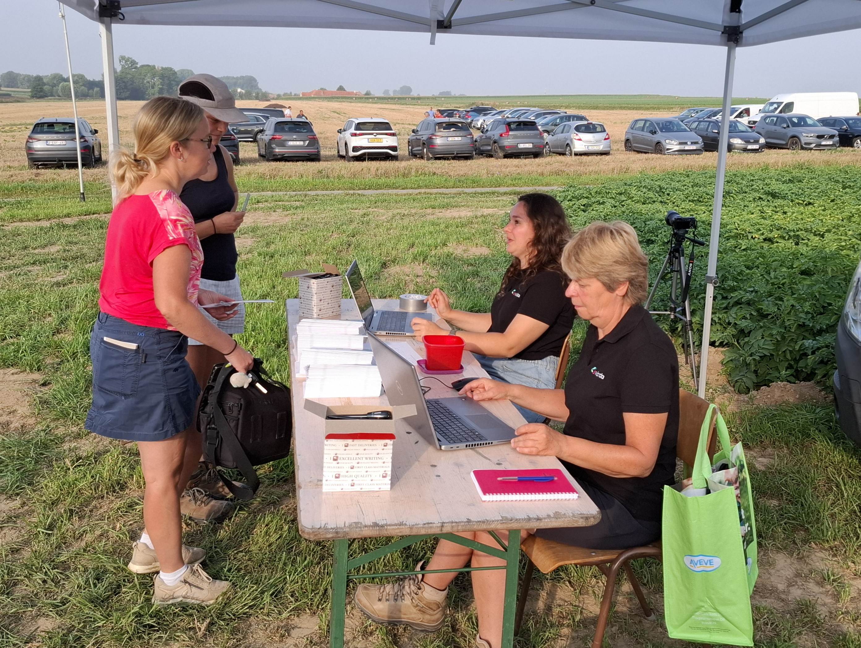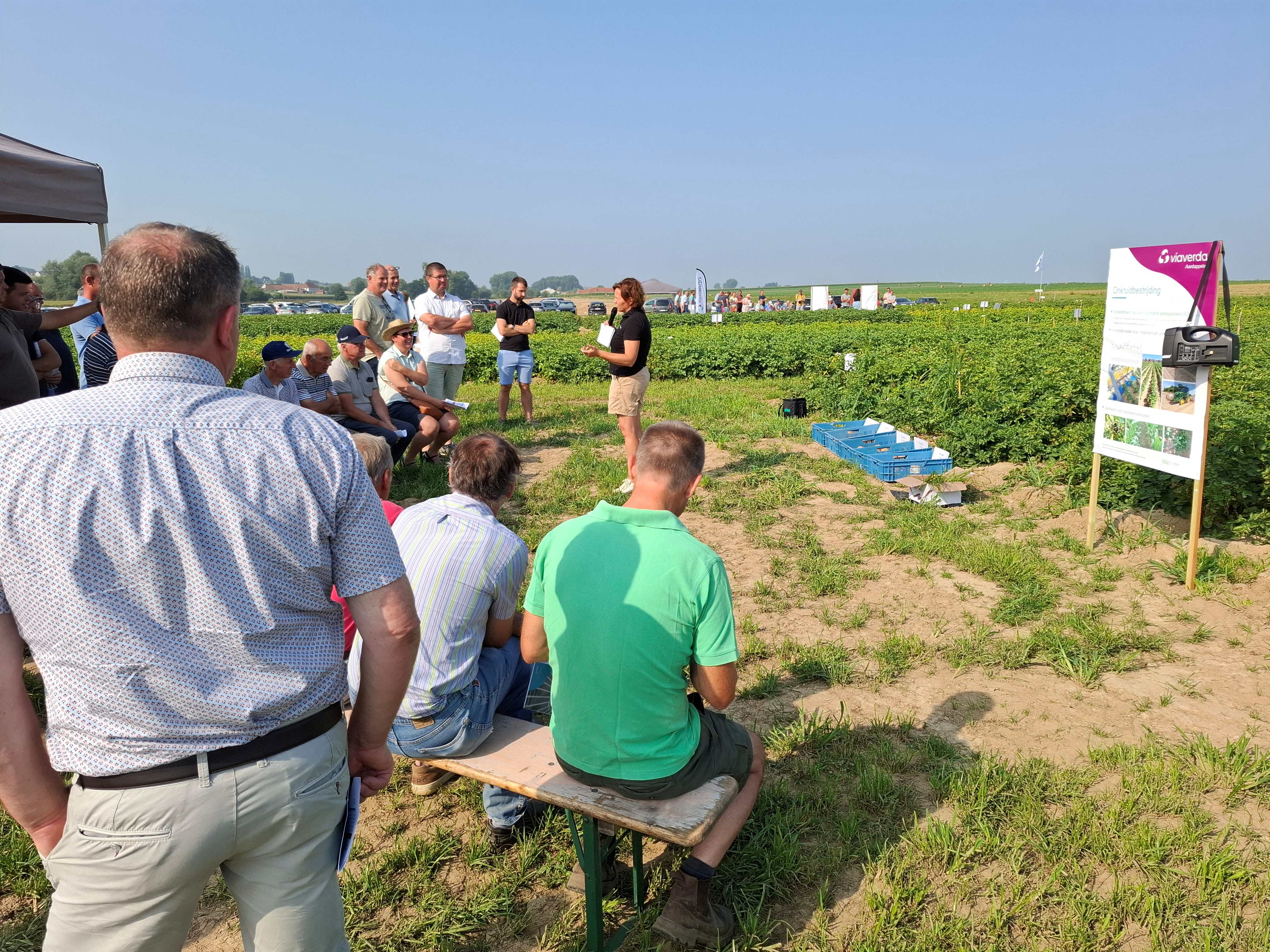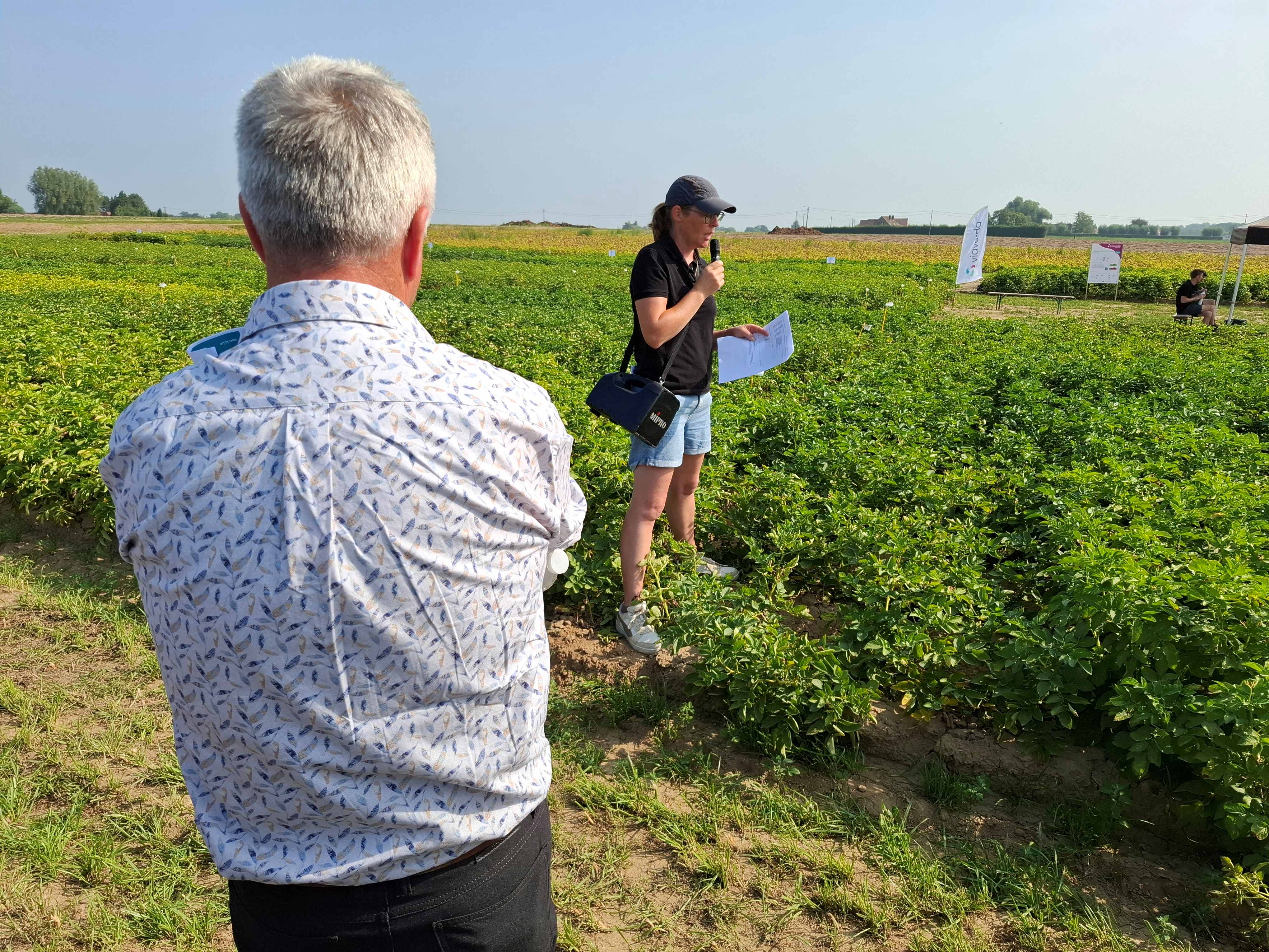 Grote opkomst, kennisuitwisseling en zonovergoten: meer dan geslaagde Aardappel- en Uiendag maandag 18 augustus 2025 Print Op donderdag 14 augustus 2025 vond de Aardappel- en Uiendag plaats op de proefvelden langs de Boviestraat in Kruisem. De opkomst was groot, de zon was van de partij en kennisdeling stond centraal. De Aardappel- en Uiendag werd georganiseerd door het Agentschap Landbouw en Zeevisserij en Viaverda. Honderden deelnemers hadden zich ingeschreven. Keuze was er tussen het voormiddag- of het namiddagprogramma, dat telkens gelijk was. Over de middag werden smakelijke frieten geserveerd en de meer dan geslaagde dag werd beëindigd met een zoete afsluiter. Deze Aardappel- en Uiendag kwam in aanmerking als vormingsactiviteit voor de fytolicentie. Ook de zomerzon was overvloedig van de partij. Extra water en tenten zorgden voor de noodzakelijke verfrissing en verkoeling. De dag stond voluit in het teken van kennisuitwisseling tussen onderzoek en praktijk. Dat benadrukte ook Bart Debussche van het Agentschap Landbouw en Zeevisserij, die de inleiding verzorgde. Pascal Braekman van het Agentschap Landbouw en Zeevisserij gaf vervolgens meer uitleg over de invoering van de digitale registratie van gewasbeschermingsmiddelen. Dat komt eraan op 1 januari 2026. Nog niet alle details werden afgeklopt en het dossier is nog volop in evolutie. De Aardappel- en Uiendag op de proefvelden langs de Boviestraat in Kruisem was een groot succes. Honderden bezoekers waren zowel in de voor- als in de namiddag op de afspraak voor kennisuitwisseling in de aardappel- en uienteelt. De Aardappel- en Uiendag telde mee als vormingsactiviteit voor de fytolicentie. Jonas Bodyn en Bart Debussche overlopen in de vroege ochtend nog eens de laatste details. Bart Debussche benadrukte in zijn inleiding de belangrijke band tussen onderzoek en praktijk. Aardappelen Op het proefveldbezoek aardappelen ging de aandacht naar Onkruidbestrijding met minimale input van actieve stoffen Onkruidbestrijding in na-opkomst Vergelijking late rassen-friet Aaltjesonderzoek GLOVEBO en Wakkere planten Effect van weer en rassenkeuze op aardappelziektebestrijding Duurzame aardappelteelt Stikstofbenuttingsefficiëntie van verschillende aardappelrassen Stikstofbehoefte van aardappelrassen Fertigatie in aardappelen Klimaatbewuster telen met de Klimaatscan Niet-kerende bodembewerking Mineralisatie van bodemorganische stof Pascal Braekman lichtte de invoering van de digitale registratie van gewasbeschermingsmiddelen toe. Klimaatbewust telen en de Klimaatscan: Lauren Verleysen aan het woord. Ilse Eeckhout, teamleider aardappelen, had het onder meer over onkruidbestrijding. Veerle De Blauwer duidde enkele eigenschappen van nieuwe frietrassen. Stany Vandermoere en Emiel Heyman focusten op het weer en de rassenkeuze in het kader van de bestrijding van de aardappelziekte. Bodem en water: uitleg werd gegeven door Jeroen De Waele. Uien Op het proefveldbezoek uien ging de aandacht naar: Situering uienteelt in België Klimaatgegevens proefveld Actualiteiten in de gewasbescherming Bodem en bemesting Zaaitechniek en zaaibedbereiding Rassen Plagen Ook voor de Uiendag was de belangstelling, zowel in de voor- als in de namiddag, groot. Jonas Bodyn gaf onder meer toelichting over zaaitechniek en zaaibedbereiding. De organisatie van de Aardappel- en Uiendag was in handen van Viaverda en het Agentschap Landbouw en Zeevisserij. Elise Vandewoestijne duidde het project van fertigatie in uien. Onder meer stikstofbemesting in uien werd toegelicht door Lien De Schrijver. Afdelingshoofd Els Pauwels gaf zaadhuizen de kans hun rassen toe te lichten. Louis Lippens ging dieper in op tripsbestrijding. De koffie stond 's morgens klaar. In de namiddag was er voldoende water en frisdrank. Een kleine 20-tal bedrijven stelden hun producten en diensten in het standendorp voor. 's Middags waren er frieten. Het namiddagprogramma werd beëindigd met een zoete afsluiter. Meer info Ilse Eeckhout Jonas Bodyn Vorig Artikel Dagonis en Simveris nu ook erkend tegen roest Volgend Artikel Roestbestrijdingsmiddelen anno 2025: eigenschappen en toepassing Bekijk de publicatie Bezoekersgids aardappelen.pdf Bezoekersgids uien.pdf Surf naar... Bekijk hier de video Comments are only visible to subscribers.