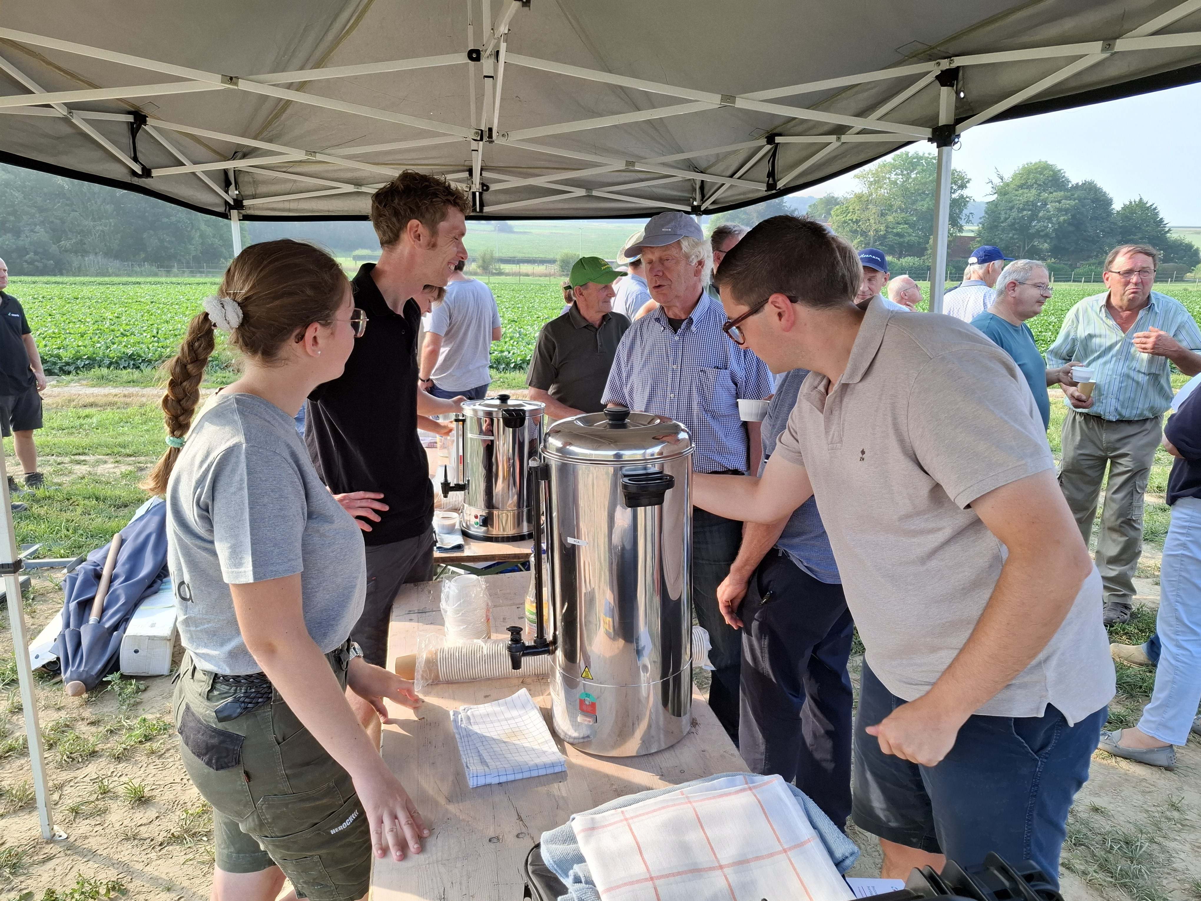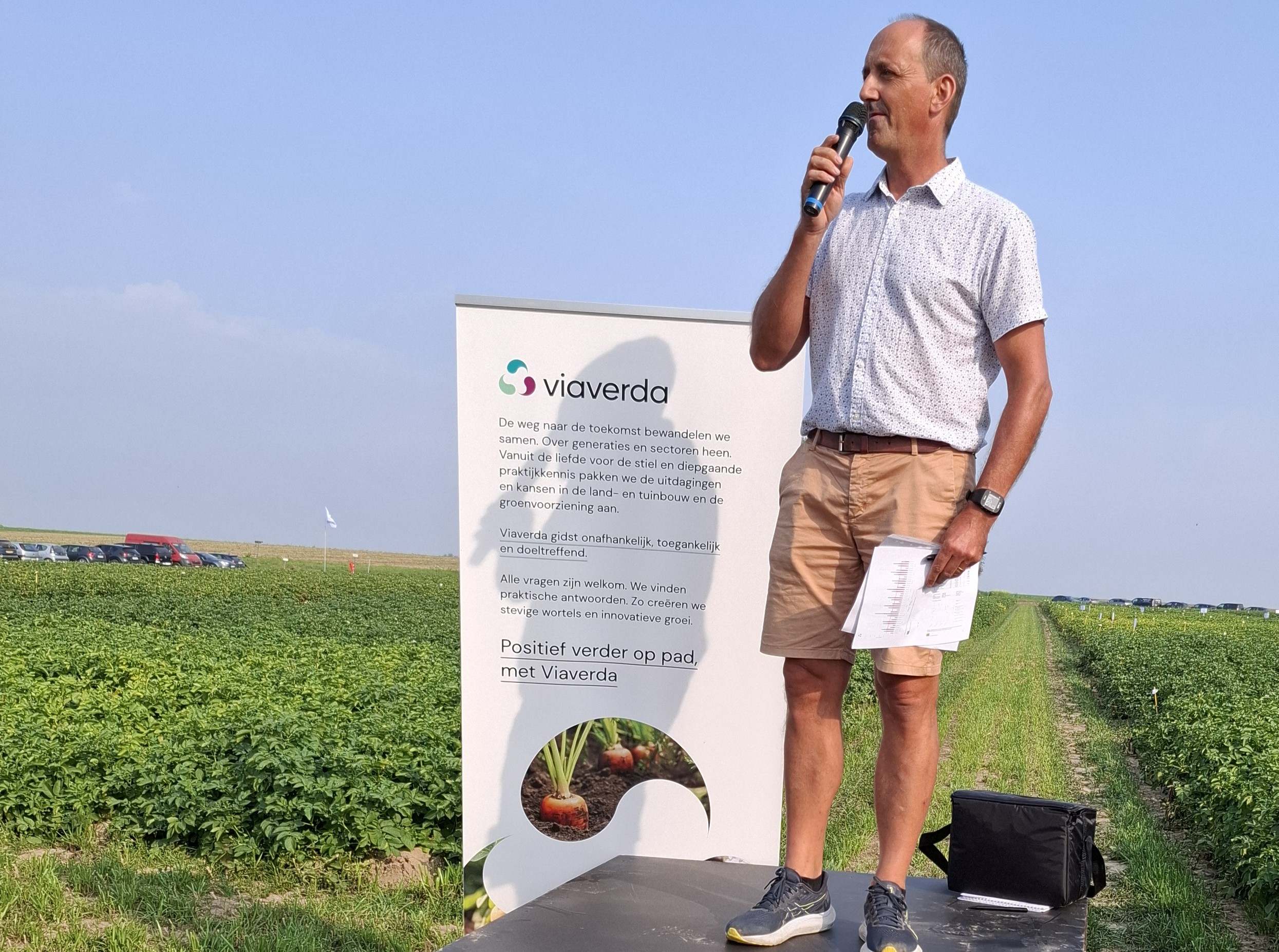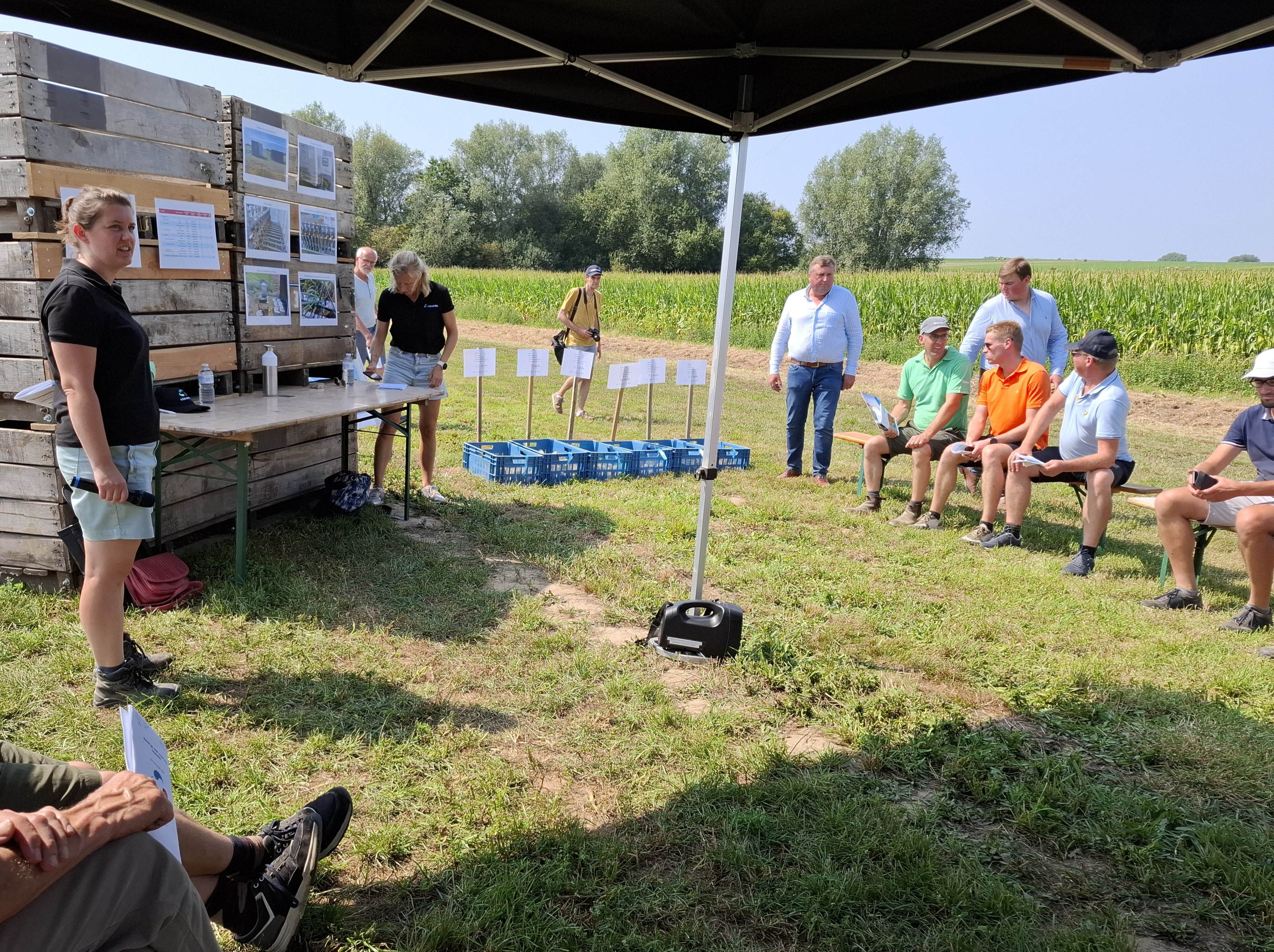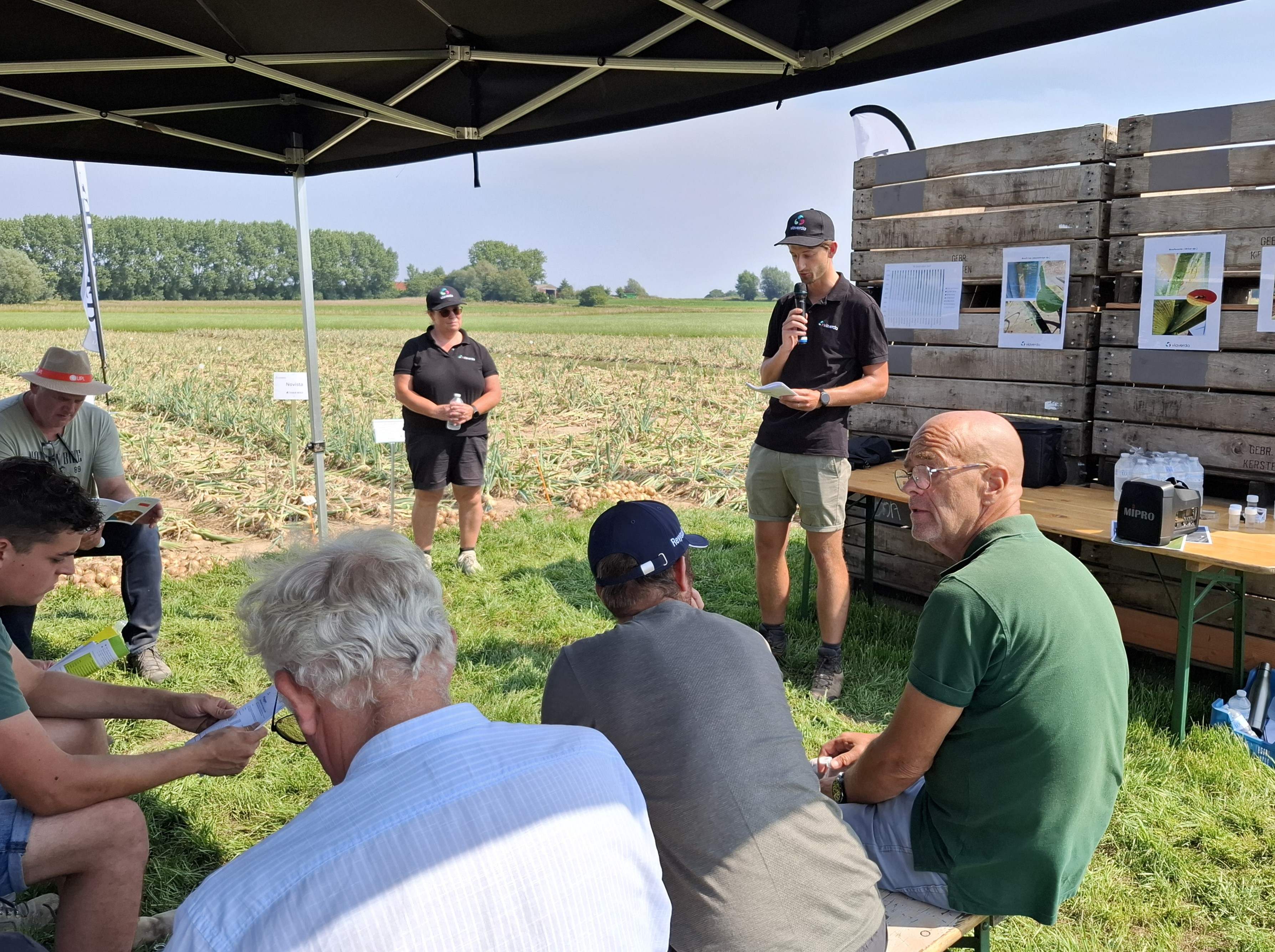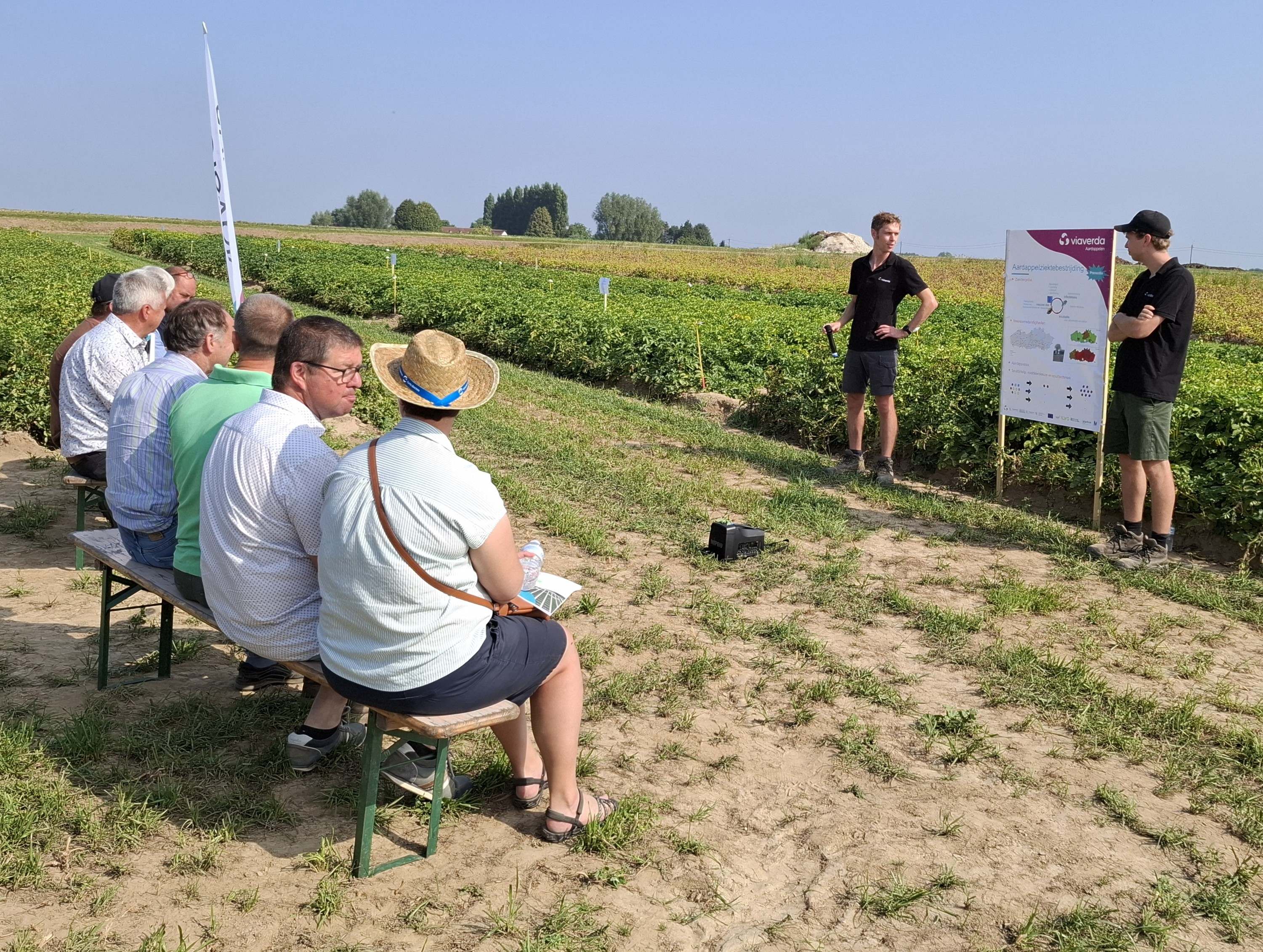 Grote opkomst, kennisuitwisseling en zonovergoten: meer dan geslaagde Aardappel- en Uiendag maandag 18 augustus 2025 Print Op donderdag 14 augustus 2025 vond de Aardappel- en Uiendag plaats op de proefvelden langs de Boviestraat in Kruisem. De opkomst was groot, de zon was van de partij en kennisdeling stond centraal. De Aardappel- en Uiendag werd georganiseerd door het Agentschap Landbouw en Zeevisserij en Viaverda. Honderden deelnemers hadden zich ingeschreven. Keuze was er tussen het voormiddag- of het namiddagprogramma, dat telkens gelijk was. Over de middag werden smakelijke frieten geserveerd en de meer dan geslaagde dag werd beëindigd met een zoete afsluiter. Deze Aardappel- en Uiendag kwam in aanmerking als vormingsactiviteit voor de fytolicentie. Ook de zomerzon was overvloedig van de partij. Extra water en tenten zorgden voor de noodzakelijke verfrissing en verkoeling. De dag stond voluit in het teken van kennisuitwisseling tussen onderzoek en praktijk. Dat benadrukte ook Bart Debussche van het Agentschap Landbouw en Zeevisserij, die de inleiding verzorgde. Pascal Braekman van het Agentschap Landbouw en Zeevisserij gaf vervolgens meer uitleg over de invoering van de digitale registratie van gewasbeschermingsmiddelen. Dat komt eraan op 1 januari 2026. Nog niet alle details werden afgeklopt en het dossier is nog volop in evolutie. De Aardappel- en Uiendag op de proefvelden langs de Boviestraat in Kruisem was een groot succes. Honderden bezoekers waren zowel in de voor- als in de namiddag op de afspraak voor kennisuitwisseling in de aardappel- en uienteelt. De Aardappel- en Uiendag telde mee als vormingsactiviteit voor de fytolicentie. Jonas Bodyn en Bart Debussche overlopen in de vroege ochtend nog eens de laatste details. Bart Debussche benadrukte in zijn inleiding de belangrijke band tussen onderzoek en praktijk. Aardappelen Op het proefveldbezoek aardappelen ging de aandacht naar Onkruidbestrijding met minimale input van actieve stoffen Onkruidbestrijding in na-opkomst Vergelijking late rassen-friet Aaltjesonderzoek GLOVEBO en Wakkere planten Effect van weer en rassenkeuze op aardappelziektebestrijding Duurzame aardappelteelt Stikstofbenuttingsefficiëntie van verschillende aardappelrassen Stikstofbehoefte van aardappelrassen Fertigatie in aardappelen Klimaatbewuster telen met de Klimaatscan Niet-kerende bodembewerking Mineralisatie van bodemorganische stof Pascal Braekman lichtte de invoering van de digitale registratie van gewasbeschermingsmiddelen toe. Klimaatbewust telen en de Klimaatscan: Lauren Verleysen aan het woord. Ilse Eeckhout, teamleider aardappelen, had het onder meer over onkruidbestrijding. Veerle De Blauwer duidde enkele eigenschappen van nieuwe frietrassen. Stany Vandermoere en Emiel Heyman focusten op het weer en de rassenkeuze in het kader van de bestrijding van de aardappelziekte. Bodem en water: uitleg werd gegeven door Jeroen De Waele. Uien Op het proefveldbezoek uien ging de aandacht naar: Situering uienteelt in België Klimaatgegevens proefveld Actualiteiten in de gewasbescherming Bodem en bemesting Zaaitechniek en zaaibedbereiding Rassen Plagen Ook voor de Uiendag was de belangstelling, zowel in de voor- als in de namiddag, groot. Jonas Bodyn gaf onder meer toelichting over zaaitechniek en zaaibedbereiding. De organisatie van de Aardappel- en Uiendag was in handen van Viaverda en het Agentschap Landbouw en Zeevisserij. Elise Vandewoestijne duidde het project van fertigatie in uien. Onder meer stikstofbemesting in uien werd toegelicht door Lien De Schrijver. Afdelingshoofd Els Pauwels gaf zaadhuizen de kans hun rassen toe te lichten. Louis Lippens ging dieper in op tripsbestrijding. De koffie stond 's morgens klaar. In de namiddag was er voldoende water en frisdrank. Een kleine 20-tal bedrijven stelden hun producten en diensten in het standendorp voor. 's Middags waren er frieten. Het namiddagprogramma werd beëindigd met een zoete afsluiter. Meer info Ilse Eeckhout Jonas Bodyn Vorig Artikel Dagonis en Simveris nu ook erkend tegen roest Volgend Artikel Roestbestrijdingsmiddelen anno 2025: eigenschappen en toepassing Bekijk de publicatie Bezoekersgids aardappelen.pdf Bezoekersgids uien.pdf Surf naar... Bekijk hier de video Comments are only visible to subscribers.