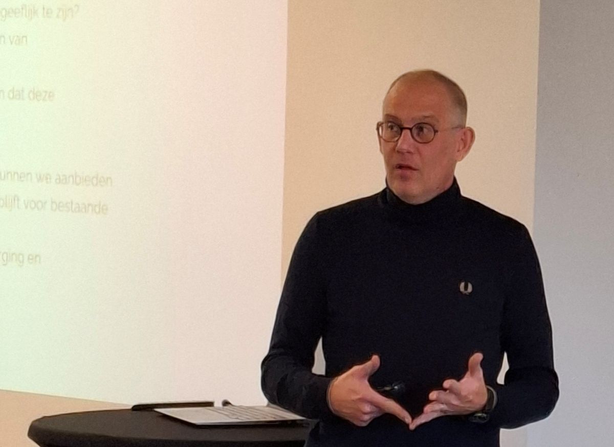 De namiddag ging verder met getuigenissen van drie ervaringsdeskundigen. Dirk Mermans (foto onder) van Plantlovers.eu, Steven Van de Bossche van Hermie.com en Wouter Velle van lens-roses.com kwamen elk met een eigen presentatie. Dirk vertelde dat hij gestart is met zijn webshop tijdens de lockdown in 2020 omwille van de grote populariteit van de Monstera variegata en benadrukte het grote verschil tussen B2B en B2C.