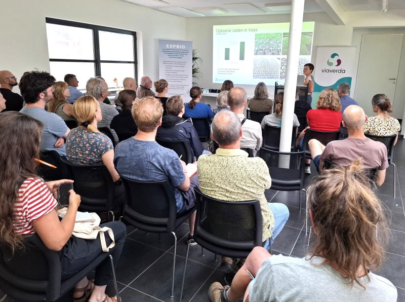 Een belangrijk onderdeel van de namiddag was de toelichting van het Europese onderzoeksproject EXPBIO, waarin ook de Vlaamse Landmaatschappij (VLM) een actieve partner is. Dit Interreg North Sea-project zet sterk in op het herstel van ecosystemen door onder meer de bodemzaadbank te versterken en innovatieve zaadmengsels te ontwikkelen. Ook educatie en burgerwetenschap spelen een centrale rol. In Destelbergen werden in dat kader diverse veldproeven aangelegd, die nauwgezet worden opgevolgd en verder worden bestudeerd.