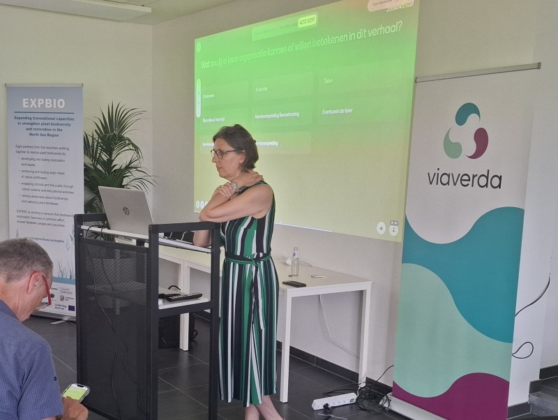 Liesbet Blindeman (Viaverda) geeft meer uitleg over de zaadteelt van wilde planten. Er werd gestart met een boeiend en leerrijk informatief gedeelte. De bijdrage van de VLM werd toegelicht door Els Seghers, communicatiemedewerker van VLM.