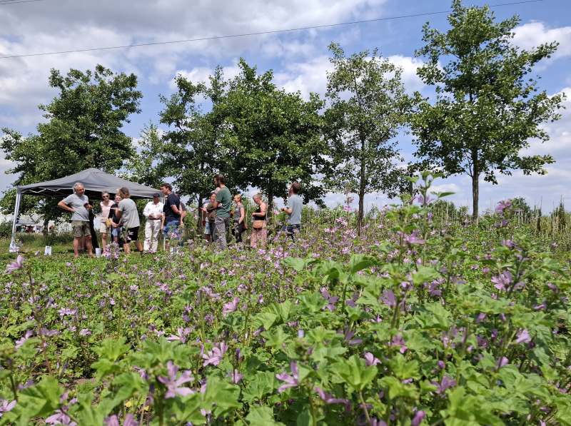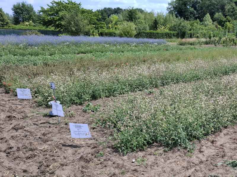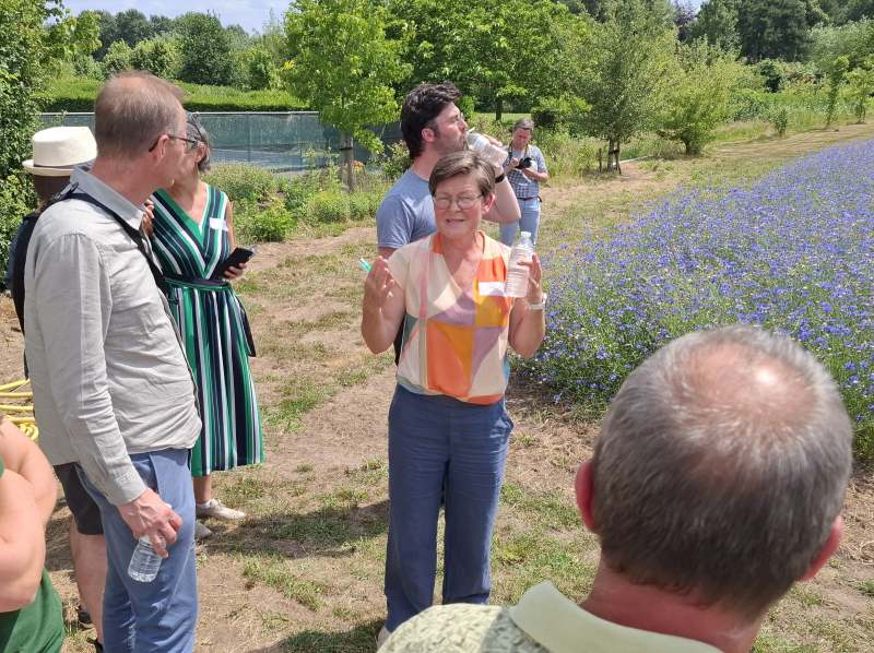 Na het theoretisch gedeelte werden de proefvelden bezocht. Daar volgde meer uitleg. In Destelbergen liggen verschillende proefvelden aan met wilde planten. Het project EXPBIO zet in op meer biodiversiteit, onder meer door wilde planten.