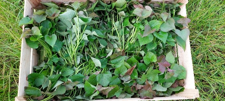 Net als vorig jaar werd dit seizoen een kleine demoproef aangelegd om het potentieel van de tussenzaai van groenbedekkers tussen de folieruggen van bataat te onderzoeken.