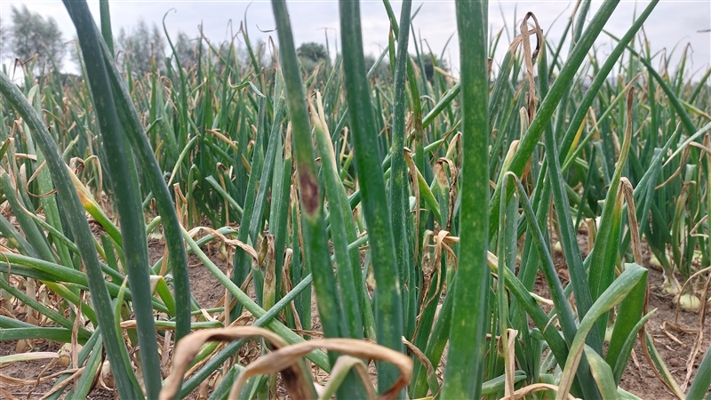 Druk op uien door valse meeldauw
