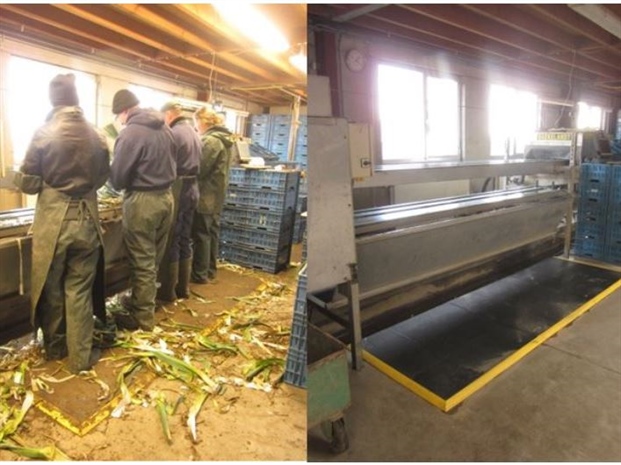 | Figuur 1: Anti-vermoeidheidsmat aan de prei pellijn |