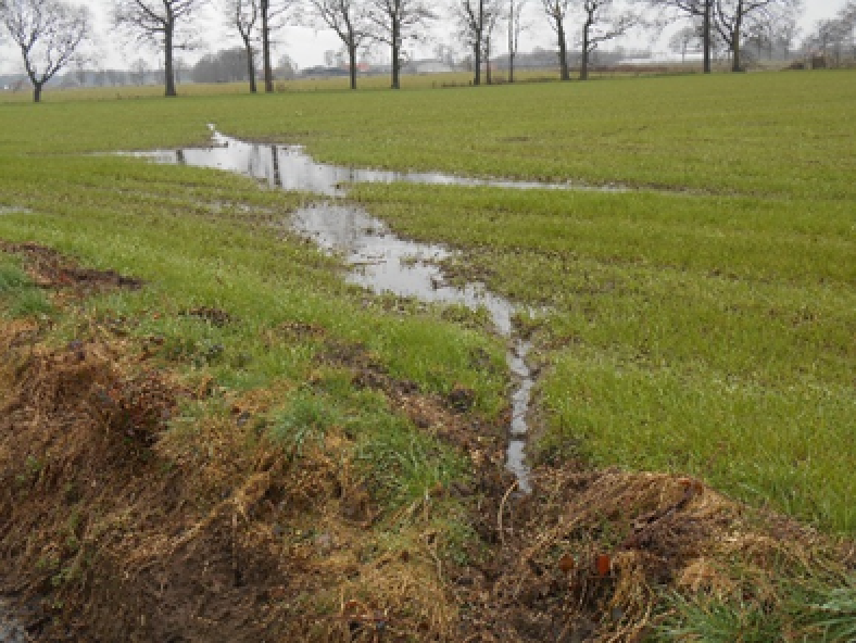 Foto 1: Afwateringsgeul van pas bemest grasland