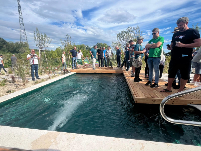 | Tijdens de excursies werden uiteenlopende types zwemvijvers bezocht, gaande van heel natuurlijke systemen met grote plantenfilters tot snel doorstroomde substraatfilters met zwembadallures. In geen enkele zwemvijver wordt gebruik gemaakt van chemische ontsmetting. |