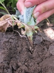 Foto: De insectenfrass wordt aan de plantvoet gelegd en licht ingewerkt