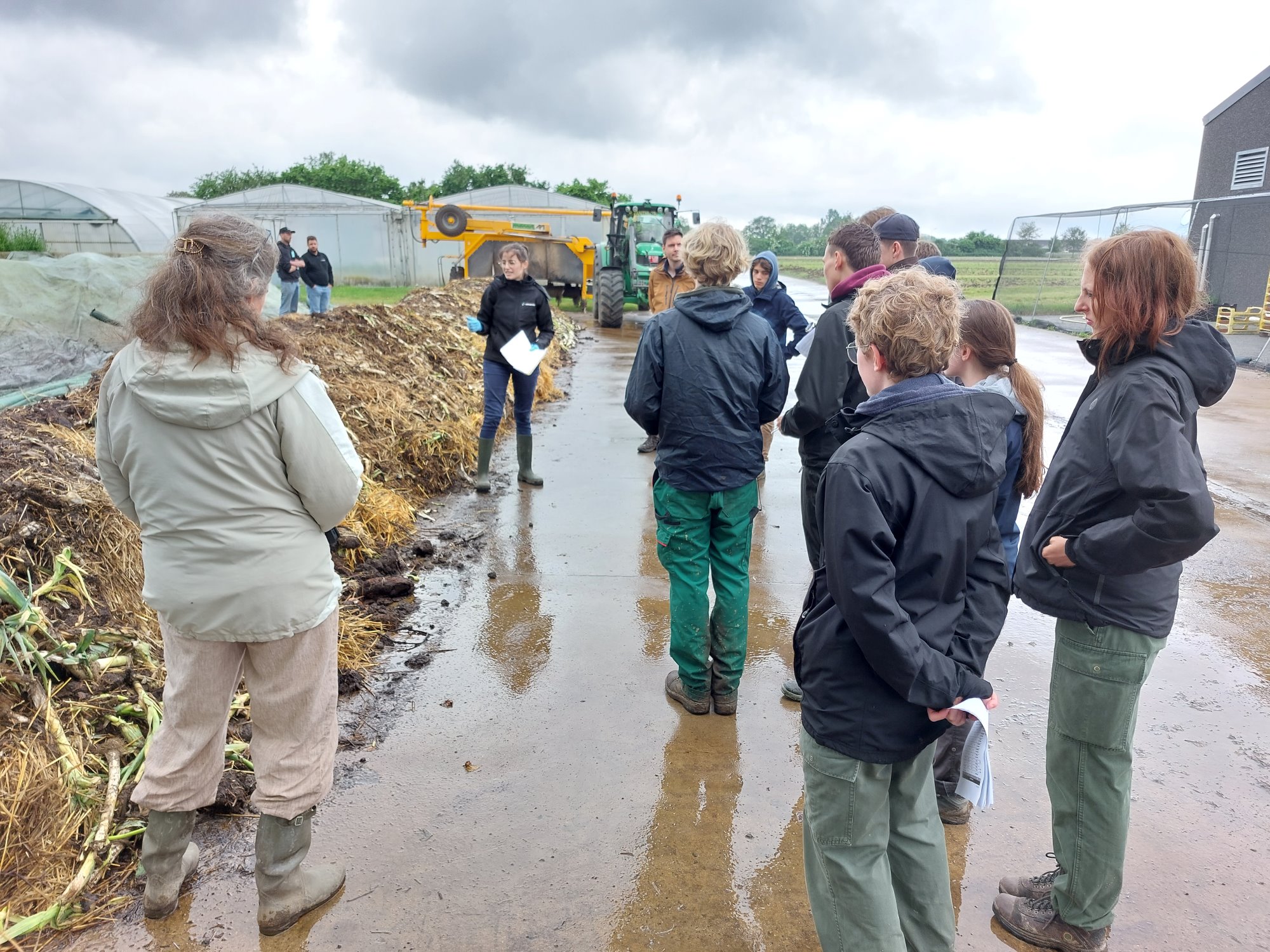 Nadien zette onderzoeker Lore Lauwers uiteen hoe Viaverda boerderijcompost aanmaakt en hoe dergelijke composthopen opgevolgd worden. Ze betrok de leerlingen bij de opvolging door hen de temperatuur en CO2-gehalte te laten meten en laten voelen of de hoop vochtig genoeg is. Daarna werd met een compostkeerder gedemonstreerd hoe de hoop gekeerd wordt voor een goede hygiënisatie van de compost.