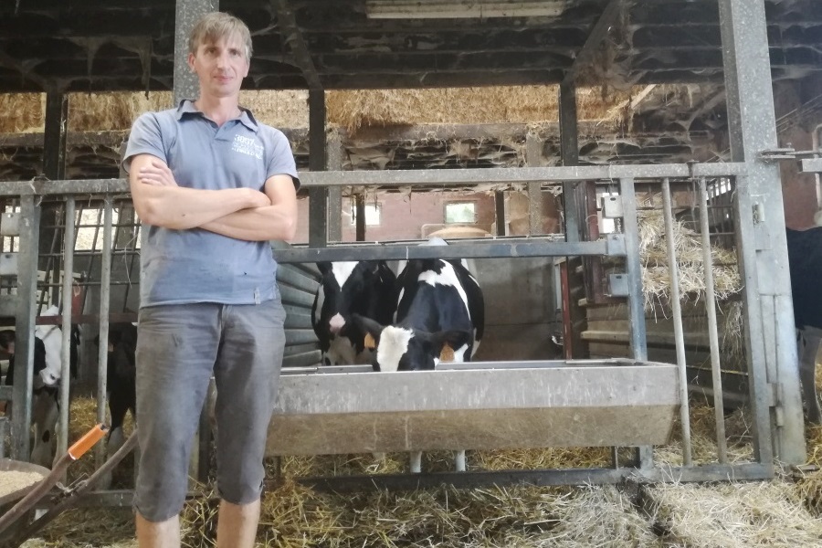 De aanhoudende droogte heeft ook dit bedrijf in West-Vlaanderen niet gespaard. “Onze percelen hebben zeer verschillende bodems, dus ook de kwaliteit van de maïs is erg variabel. Het feit dat er tot nu toe maar twee grassnedes gehaald konden worden en de relatief kale staat van de weides zorgt ervoor dat veel veehouders snel door hun voorraad ruwvoeder gaan. “Gelukkig had ik ruim voldoende gras voorzien en kom ik voor mijn ruwvoeder niet in de problemen. Maar je merkt natuurlijk wel dat de voorraad erg snel slinkt.” De hittegolf heeft ook zijn impact gehad op het aantal gemolken liters. “Ik heb gemerkt dat we ongeveer 2 liter per koe gedaald zijn. Die dip is nog niet goedgemaakt.”